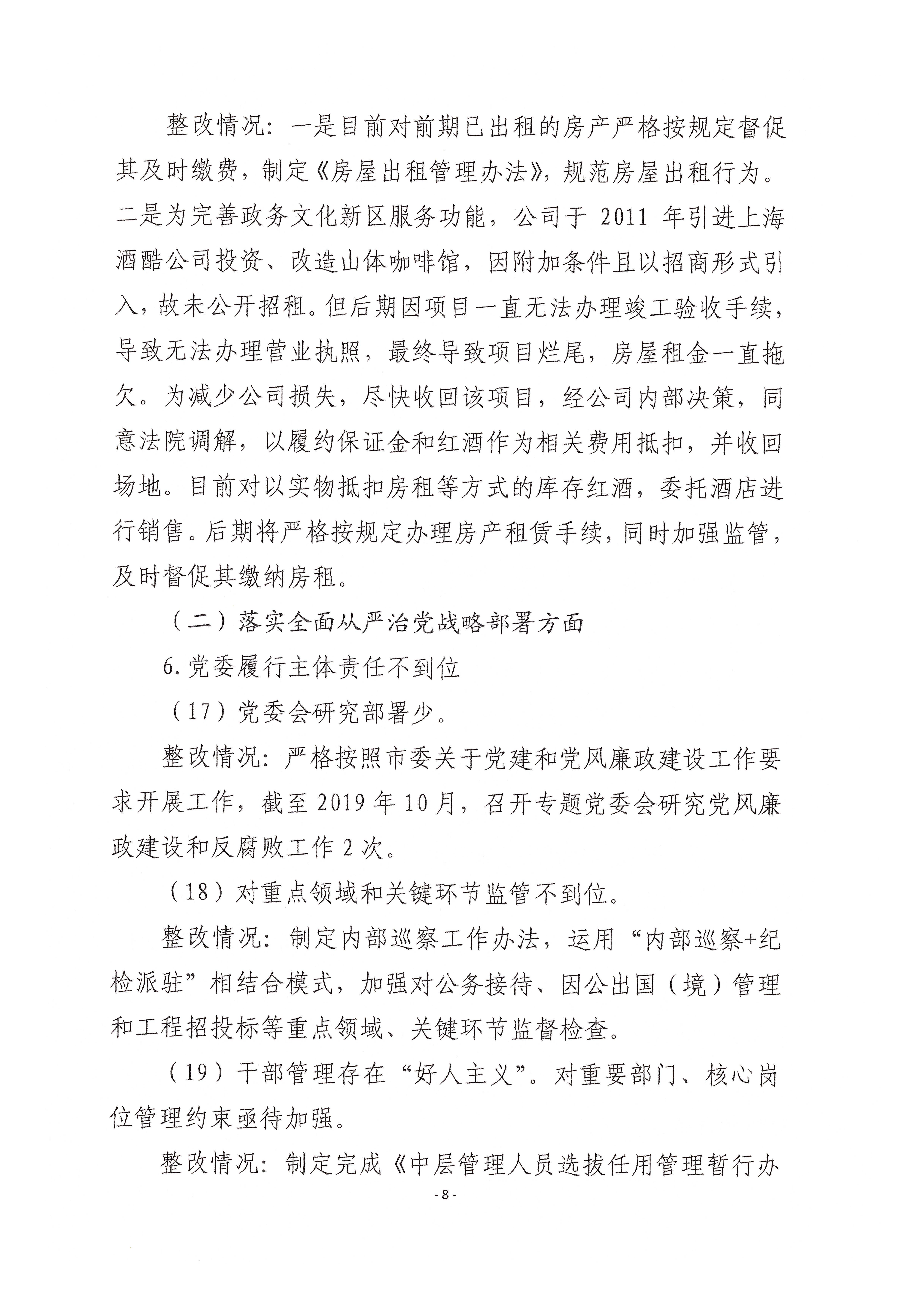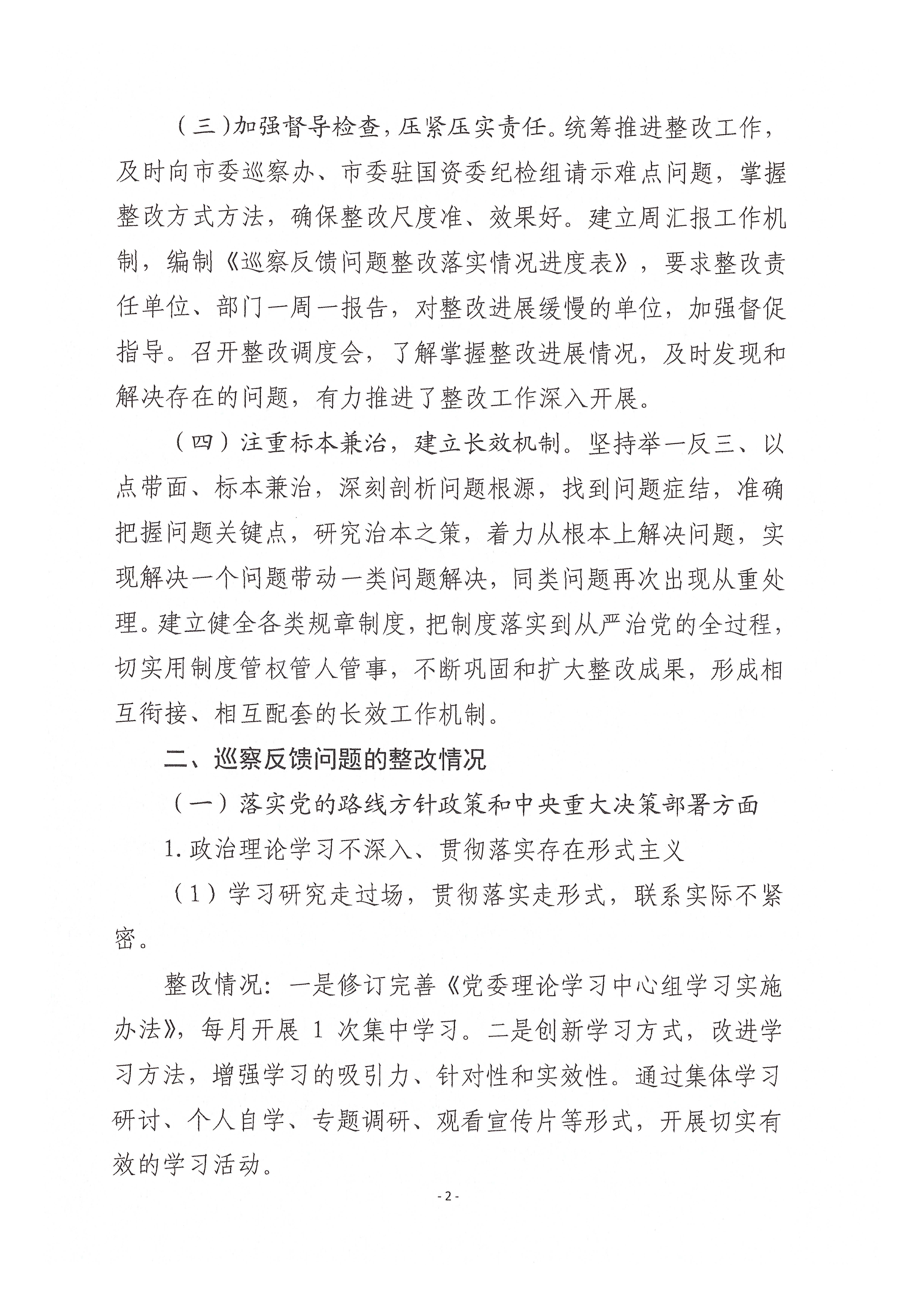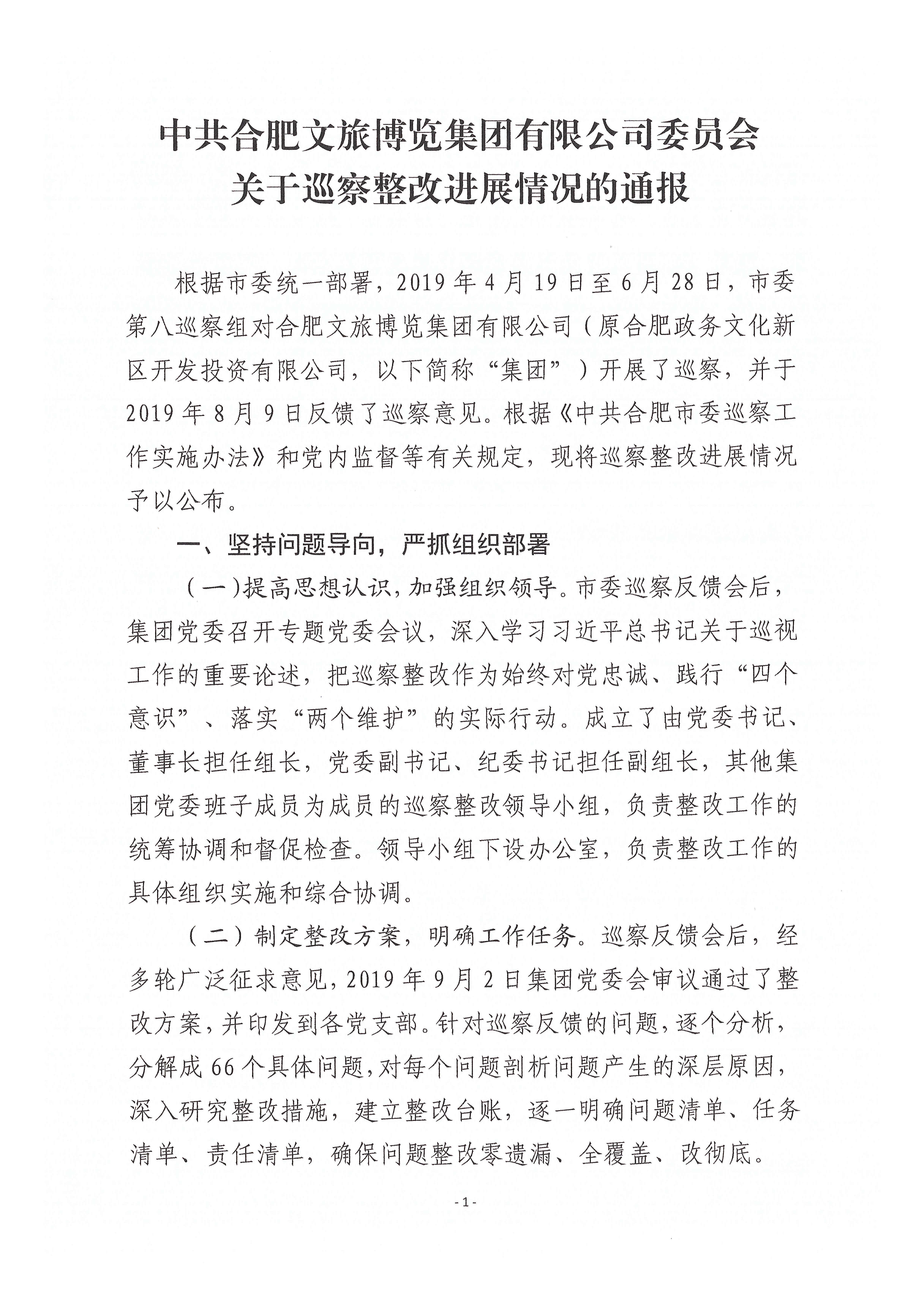 关于巡察整改进展情况的通报