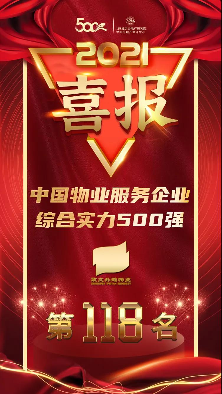 近年来,合肥市政文外滩物业不断创新举措,大力开拓市场,成效显著,2021年以卓越的发展业绩位列中国物业服务500强企业第118位,排名较去年上升26位,再度刷新历史最高位次。全体政文外滩物业人将以此表彰为契机,知责于心、砥砺前行,在新的征程中为提升人民幸福感作出新的更大的贡献。