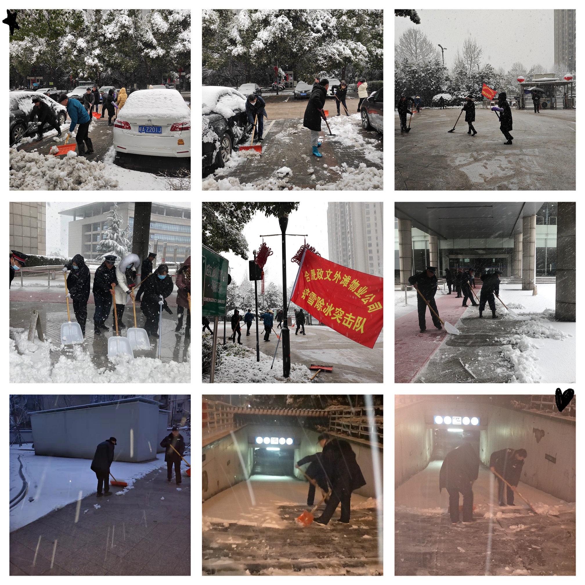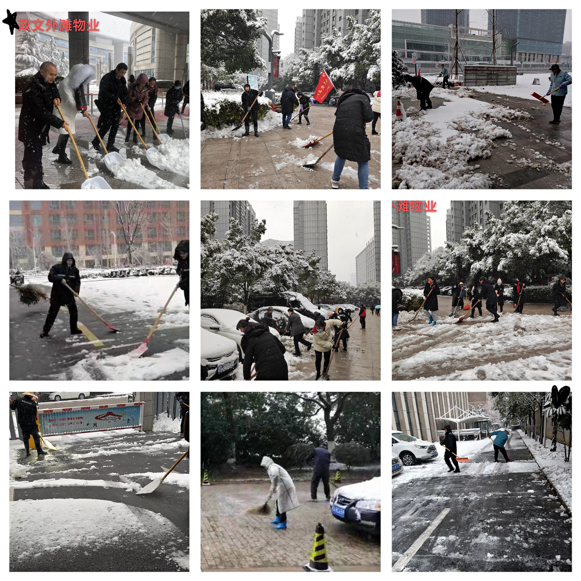 梅花报春喜,瑞雪兆丰年。 经过一上午的忙碌,经过政文外滩物业人共同的努力奋战,在管物业区域呈现一条条洋溢着温情的通畅方便之路。突如其来的大雪,无法阻挡我们服务的脚步,我们凝心聚力,团结一致,为抗击冰雪工作上交了一份出色的答卷。