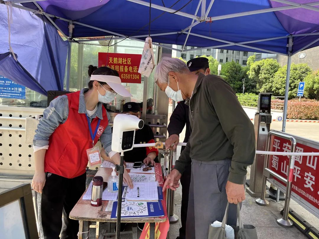 在疫情防控工作中,住宅小区工作压力尤其繁重,体育中心项目部、体育公园项目响应政府疫情防控政策要求,暂停室外场馆运营。两项目在完成日常工作及疫情防控任务后,主动至天鹅湖畔小区、天鹅湖购物中心等项目报到,主动前往小区入口处值班岗协助疫情防控,督促进出人员佩戴口罩,为进出人员测量体温、查验健康码和新冠疫苗接种码。支援住宅项目同事不讲困难、不提条件、争当先锋,身着“红马甲”,从严从紧维护现场秩序,让鲜红的党旗在防疫一线高高飘扬。