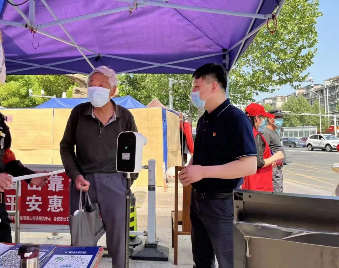 公司总经理黄灏同志,面对疫情放弃与家人团聚机会,带领政文外滩物业在管项目奋力抗疫。在物业疫情防控工作压力重重的情况下,响应集团号召,带领公司党员勇担国企责任,主动下沉至合肥市老旧无物业小区承担防疫任务,面对新的疫情防控环境,黄灏同志充分发挥党员先锋模范作用,冲锋在疫情防控第一线,驻守一线社区疫情防控工作。