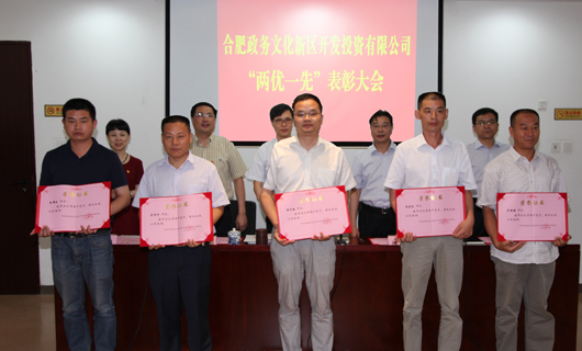 为热烈庆祝中国共产党成立95周年,表彰先进、树立标杆,激励党员奋发进取,建功立业,2016年7月1日,合肥政务文化新区开发投资有限公司纪念建党95周年暨“七一”表彰大会在4-1会议室隆重举行。公司领导班子成员陈杰、陈继良、文良武、杨兴武、罗钦,公司所属支部委员、机关支部全体党员和受表彰的先进代表参加了会议。